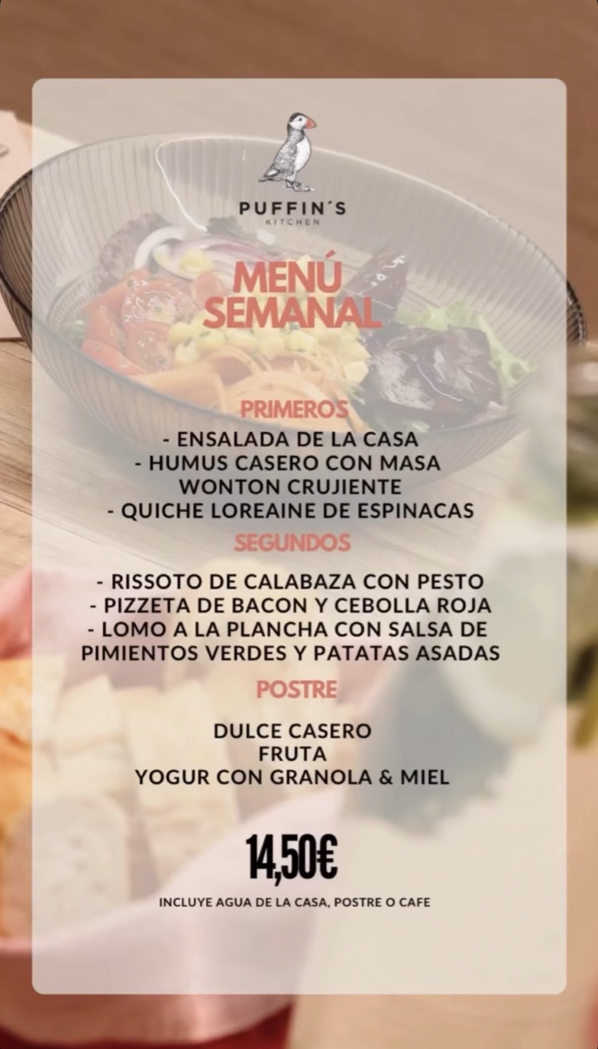 Menú Mediodía Puffins Kitchen 2026